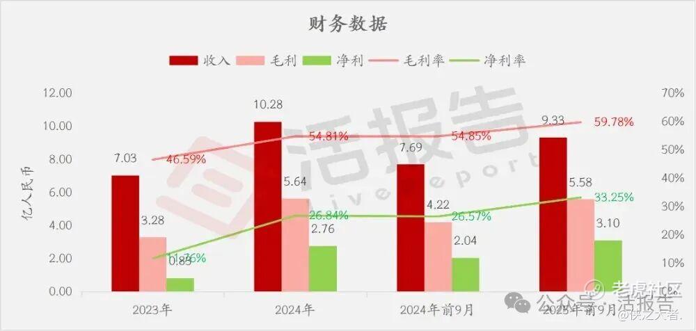 收入分别约为人民币7.03亿、10.28亿、7.69亿、9.33亿,2025年前9月同比+21.29%;