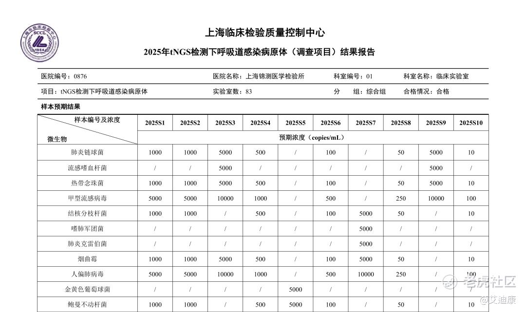 捷报+1!艾迪康旗下上海锦测通过上海临检质控中心2025年下呼吸道tNGS室间质评!