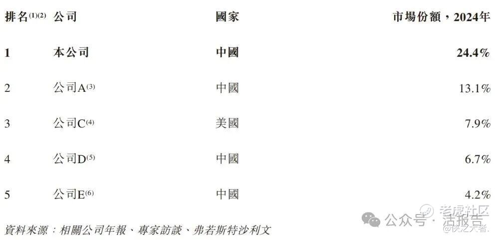 以2024年收入计算,公司市占率为24.4%排名第一。