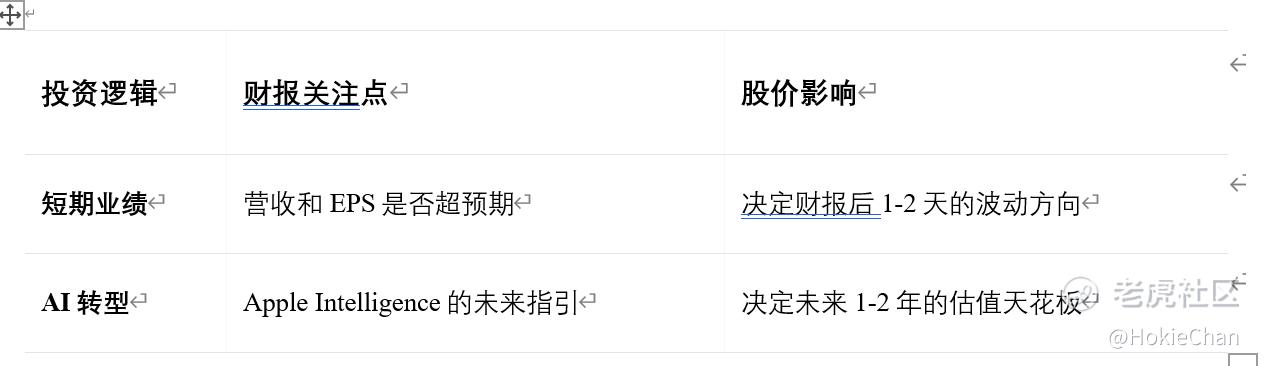 AI赋能: 市场期待管理层在财报电话会议中,披露更多关于Apple Intelligence如何与服务生态深度融合,从而提升用户付费意愿的细节。