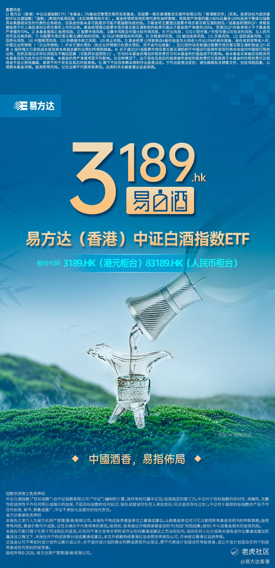今日(1月29日)白酒板块迎来强势爆发,中证白酒指数(399997)盘中涨逾9%,一扫近期调整态势。易方达白酒ETF(03189.HK)作为香港市场首只白酒主题ETF,成为捕捉白酒板块红利的优质工具。(数据来源:wind。指数过往业绩不预示其未来表现,不作为任何投资建议,请投资者关注指数波动的风险。基金实际回报受管理费用及跟踪误差等影响,或与指数表现存在差异,请投资者注意。)