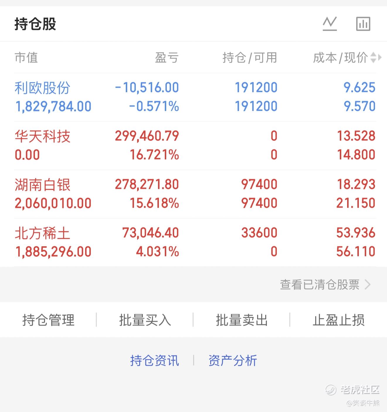 不懂的,局势复杂的票不要参与。即便是非常看好这个票,即便你是对的,也不要把所有的资金一次性怼进同一只票里。因为总有可能买到更低的位置,或者有更合适的买入时机$湖南白银(002716)$ $利欧股份(002131)$ $北方稀土(600111)$