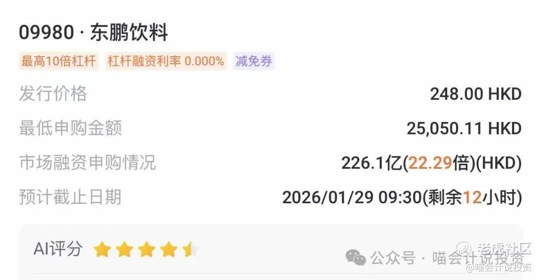 《港股打新——东鹏饮料,基石炸裂,H股仅折价11%!》