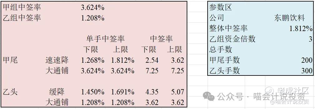 首先,因为最终定价和最终获配手数都不知道,所以不建议大家打;第二,喵老师鸣鸣很忙机关算尽没中签,心态崩了,死活要打东鹏,又不敢中太多。