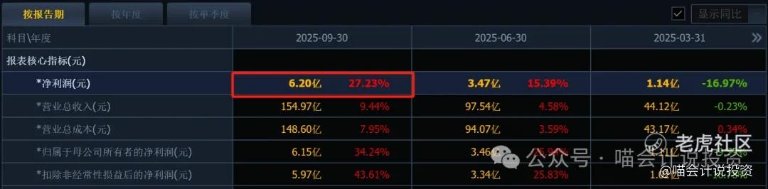 收入在增长,净利润也就7亿多,2025年前三季度YOY增长27%。