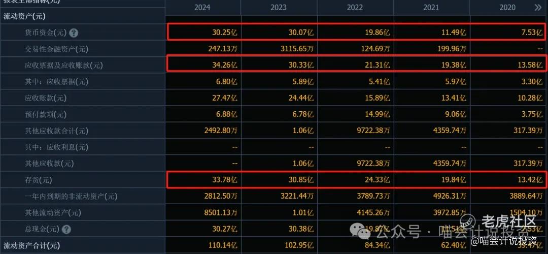 流动资产100多亿,现金、应收、存货三分天下,7个亿净利润的公司,哎。