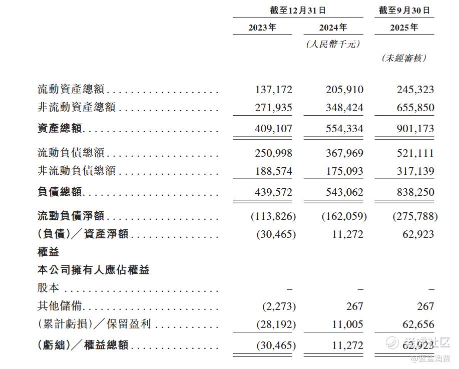 然而,凭借平价自营模式扩张的比格比萨面临着巨大的资金困境。根据招股书,2022年至2025年9月,比格比萨负债总额从4.40亿元增至8.38亿元。资产负债率虽从2023年危险的107.4%下降至2025年9月的93.02%,但仍处于高位。