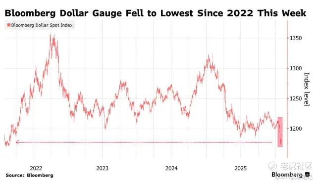 今年以来,受所谓“贬值交易”(即押注美元购买力长期下降)的影响,美元持续下跌。本周,彭博社的美元指数跌至近四年来的最低水平。