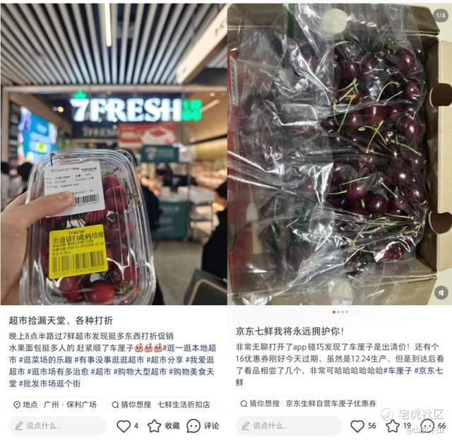小红书上网友们分享的七鲜超市车厘子「捡漏帖」