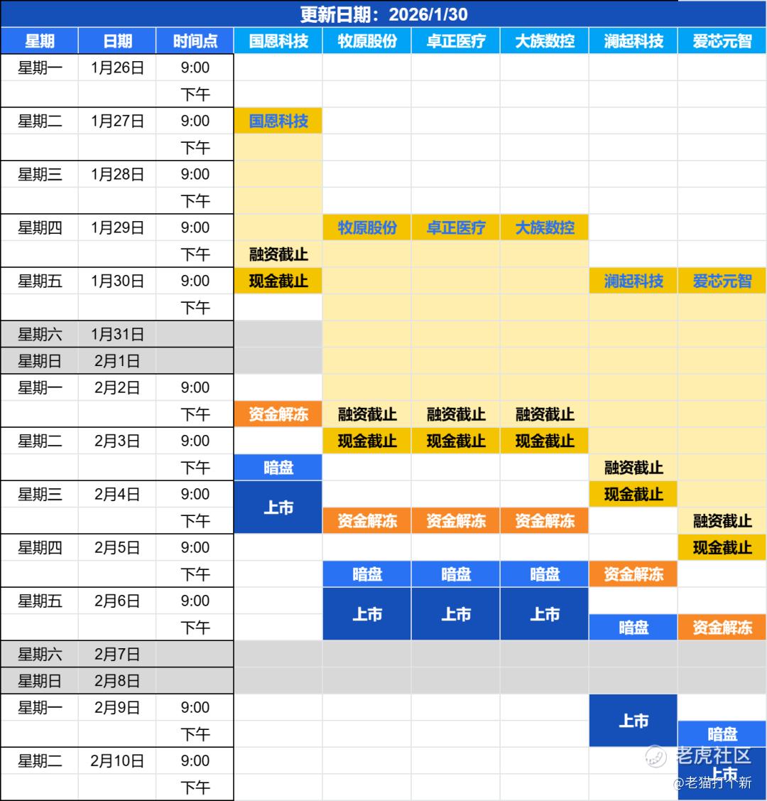 A:国恩(已截止)→牧原/卓正/大族→爱芯