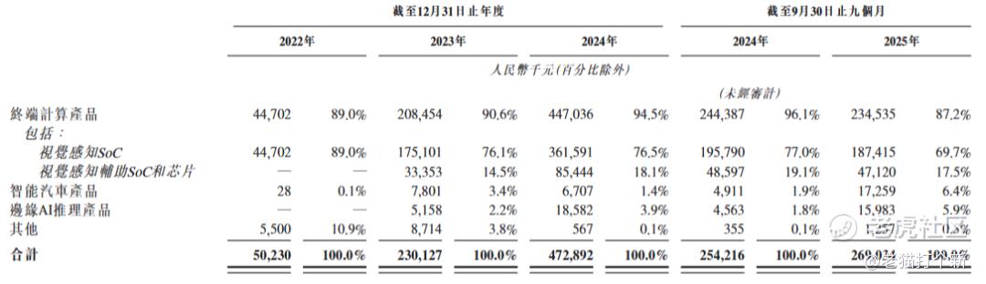 终端计算(智能视觉感知SoC)是目前占比最高的,高达87.2%,主要应用于IP摄像机与同轴摄像机,用于智能交通、智慧城市、智能家居及工业自动化等领域,这个业务没啥增长