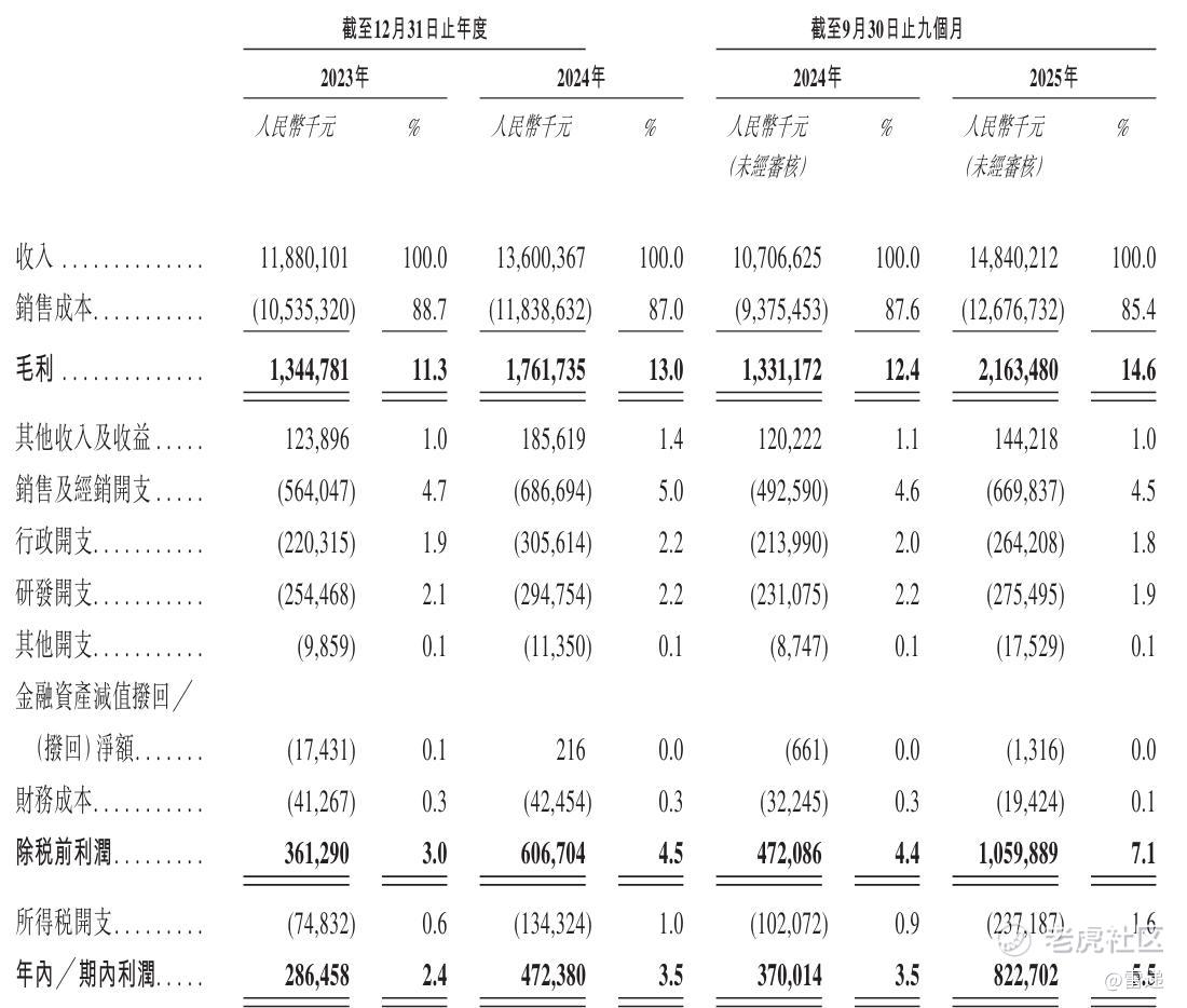 台铃科技2025年前9个月营收为148.4亿元,较上年同期的107亿元增长38.7%;毛利为21.63亿元,期内利润为8.23亿元,期内利润率为5.5%。