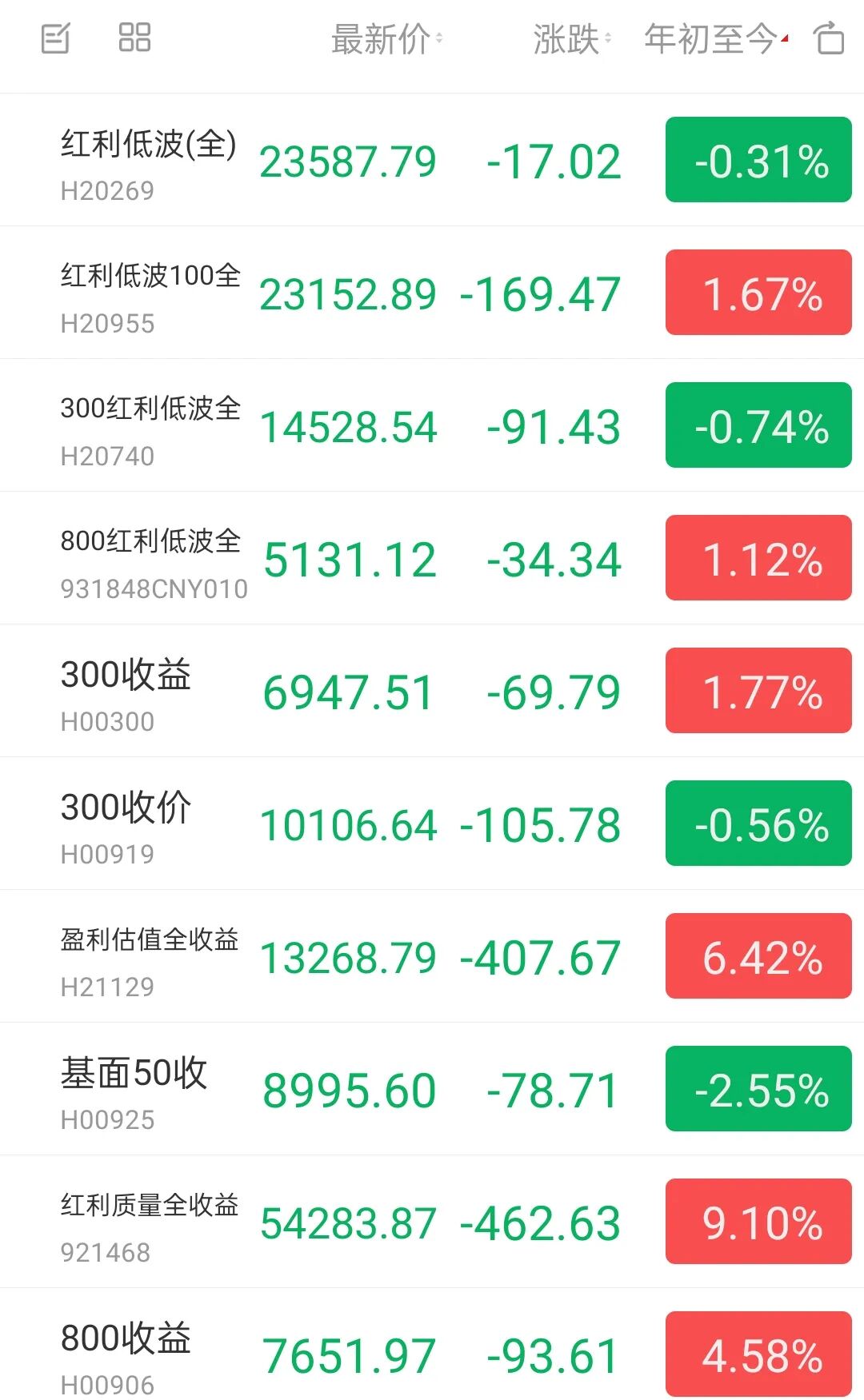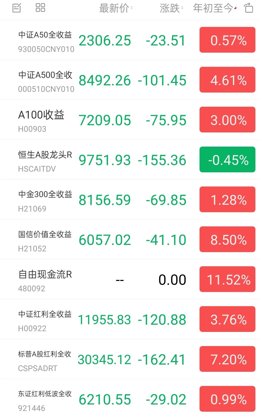 比如,配置行业龙头指数,中证A500指数收益满满,恒生A股行业龙头指数就亏损了。配置红利方向指数,标普A股红利机会指数收益满满,300红利低波指数就亏损了。