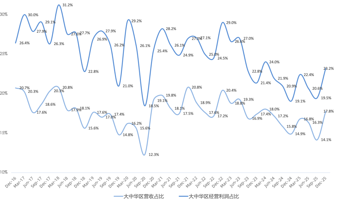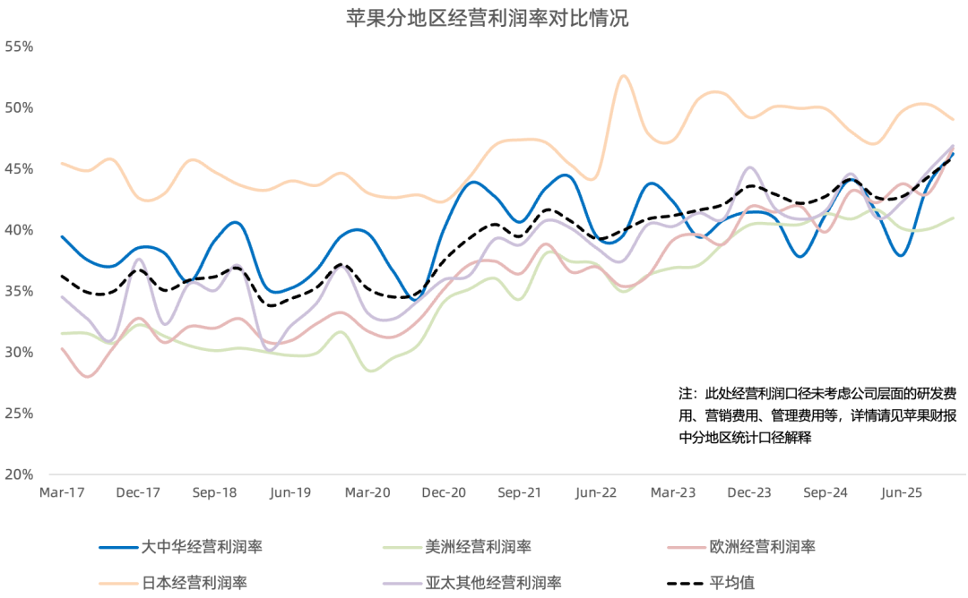 大中华区营收255亿美元,同比增长38%,增速创下自2021年以来新高,结束连续9个季度增速跑输公司平均水平,主要得益于国补,是苹果本季度财报超预期最大功臣,在中国门店的客流同比强劲两位数增长;大中华区经营利润率46.2%,同比提升2.1个百分点;