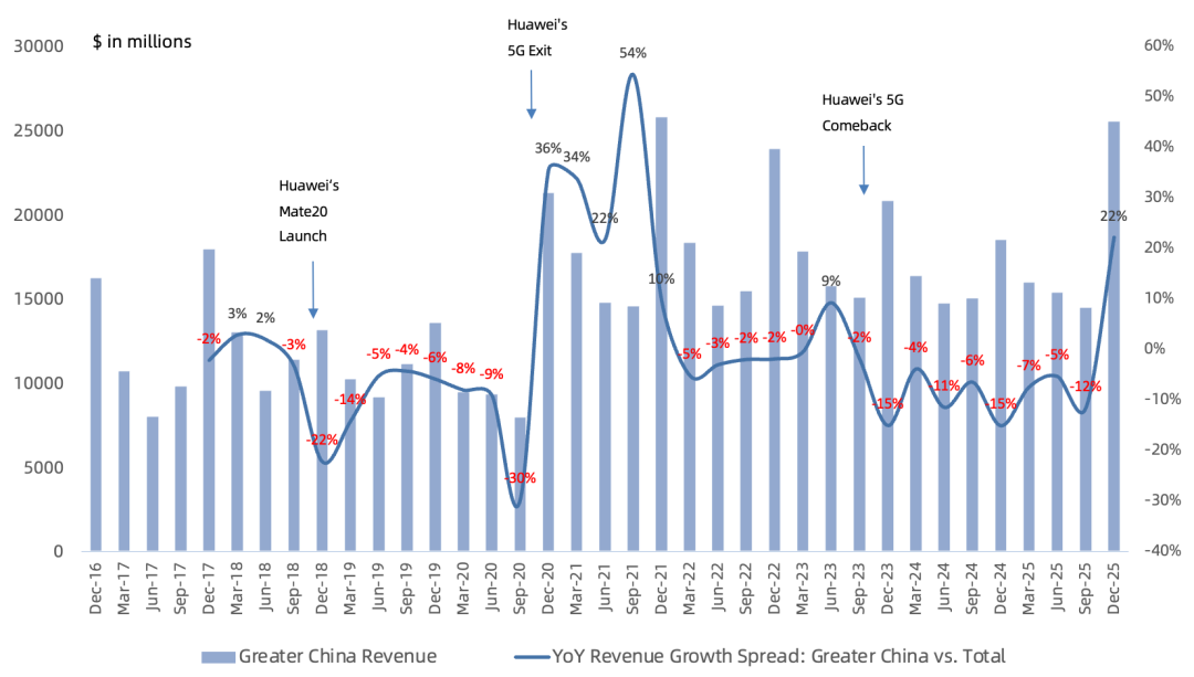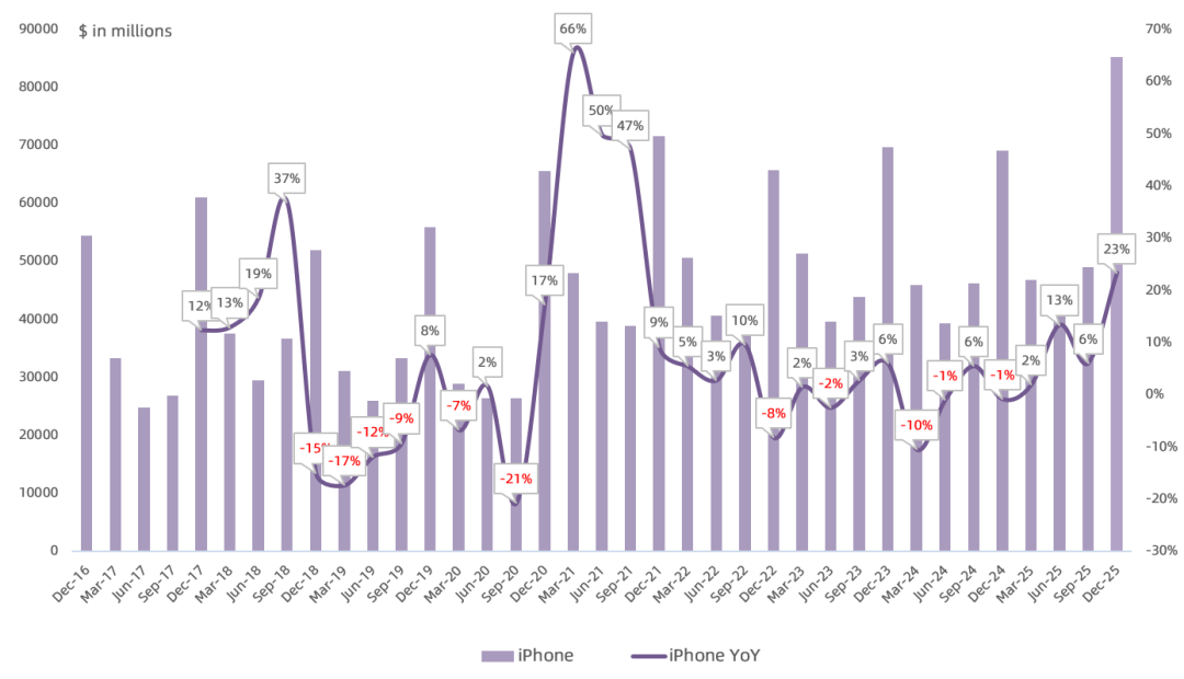 苹果FY26Q1财报一览:大中华区和iPhone成最大功臣,Services业务疲软、存储涨价影响短期可控