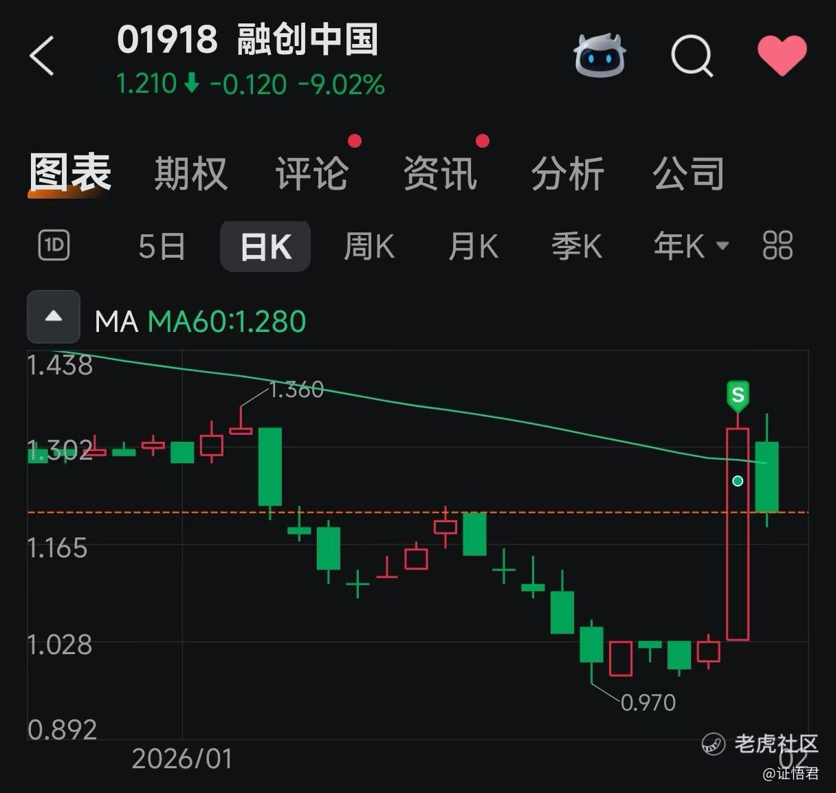 上周四老登股大涨,茅台股价一天大涨100元+,地产股票普涨。空了 $融创中国(01918)$ 股票,但不是看空公司。虽然股价只是涨回到一个月之前,1.32。但过去一个月,融创因重组顺利,总股本多了45亿股(from117亿股to162亿股),股价虽不变,但市值已经从154亿飙升至213亿,抬升了38%。显著高于过去四个月的平均市值。这合理吗?如果股本提高/股价不跌也合理,那公司每天啥事别做,默默印股票就好了。周四的卖空感觉像是《老人与海》,临时决定放出一叉,没想到被鱼拖着向前走,目前(盈亏)回到岸上,接着看鱼想怎样。
