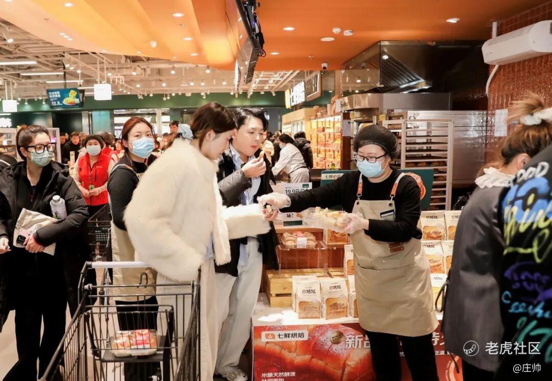 相比之下,盒马门店的试吃试喝点位要比京东七鲜少得多,而且盒马店内的悬挂系统对于许多消费来说,其噪音也一定程度影响了在店内的购物体验。