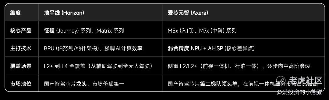 目前市场风向正在从“云端训练”转向“端侧推理” 。爱芯元智正好卡在边缘 AI 和智能汽车这两个最热门的风口。机构愿意给它高溢价,是因为看好“物理 AI”和“端侧大模型”落地的未来 。爱芯元智和地平线都是国产智驾芯片的佼佼者,但两家公司的发展路径、核心打法和市场定位有显著不同。