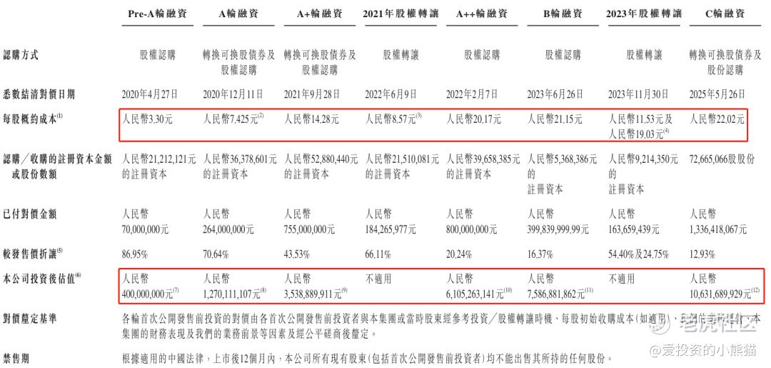 历史估值对比:在 2024 年底完成 C 轮融资后,其投后估值约为 106 亿元人民币 。这意味着,IPO 相比 Pre-IPO 轮(C轮)估值溢价了约 43%。
