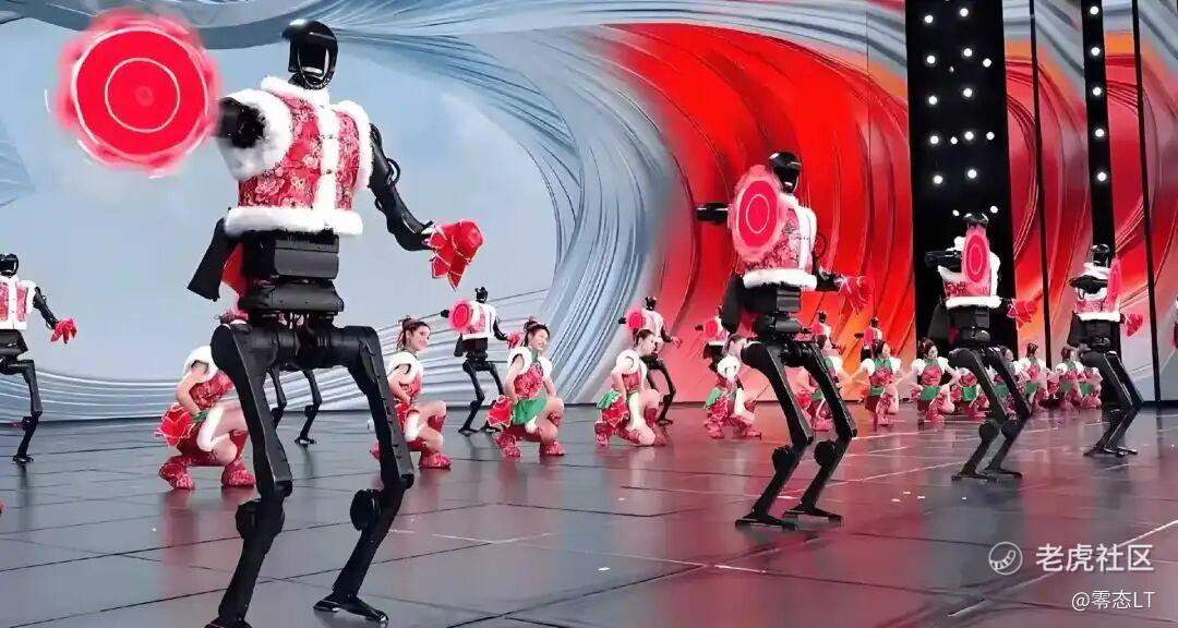 2025年春晚,张艺谋导演的创意融合舞蹈《秧BOT》,由宇树科技与新疆艺术学院联合表演,舞台上出现了人形机器人与真人舞者同台的“民俗+科技”画面。