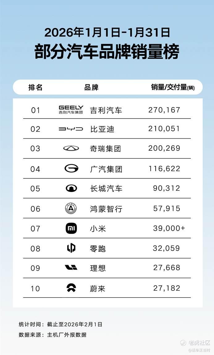 不过倒也不必过于担忧!行业由青涩走向成熟必然会经历这一考验车企综合实力的阶段。吉利汽车销量环比大增14%,达到27万辆,以6万辆的绝对优势拿到“自主一哥”的位置证明中国汽车产业走势并无问题。在新能源疯涨期走入稳定期后,吉利汽车燃油车销量破13.4万辆,环比增长86%,是市场选择在新能源降温后步入一个平衡阶段。而且我们还注意到吉利汽车的高端燃油车系列中国星(含星越L、星瑞、星瑞L)1月销量4.5万辆,环比增长160%。