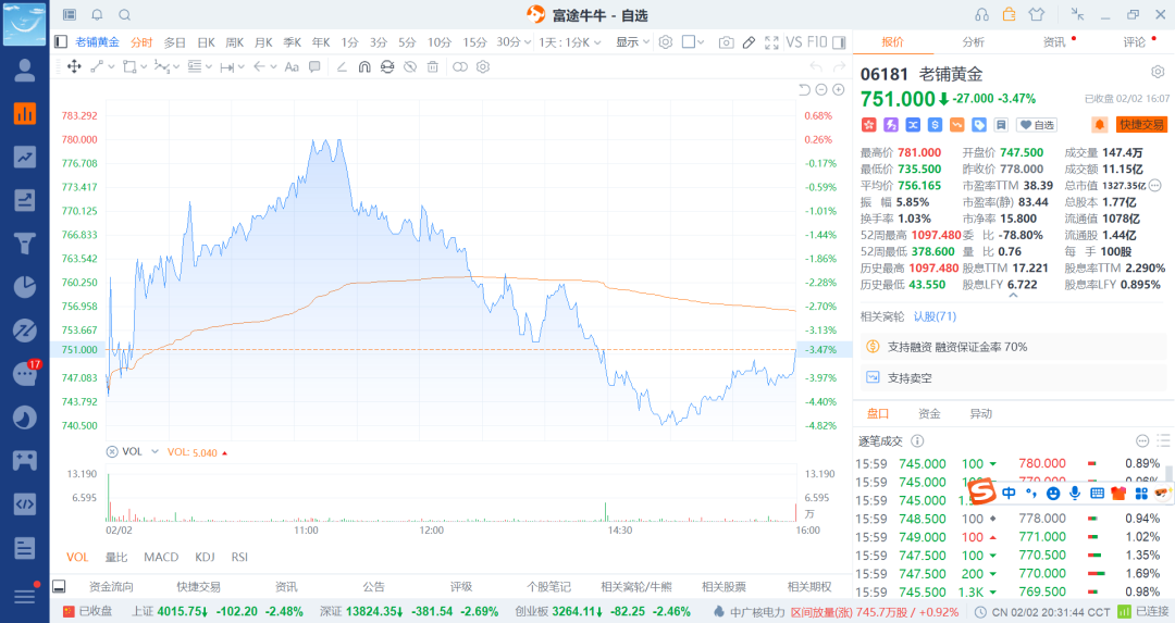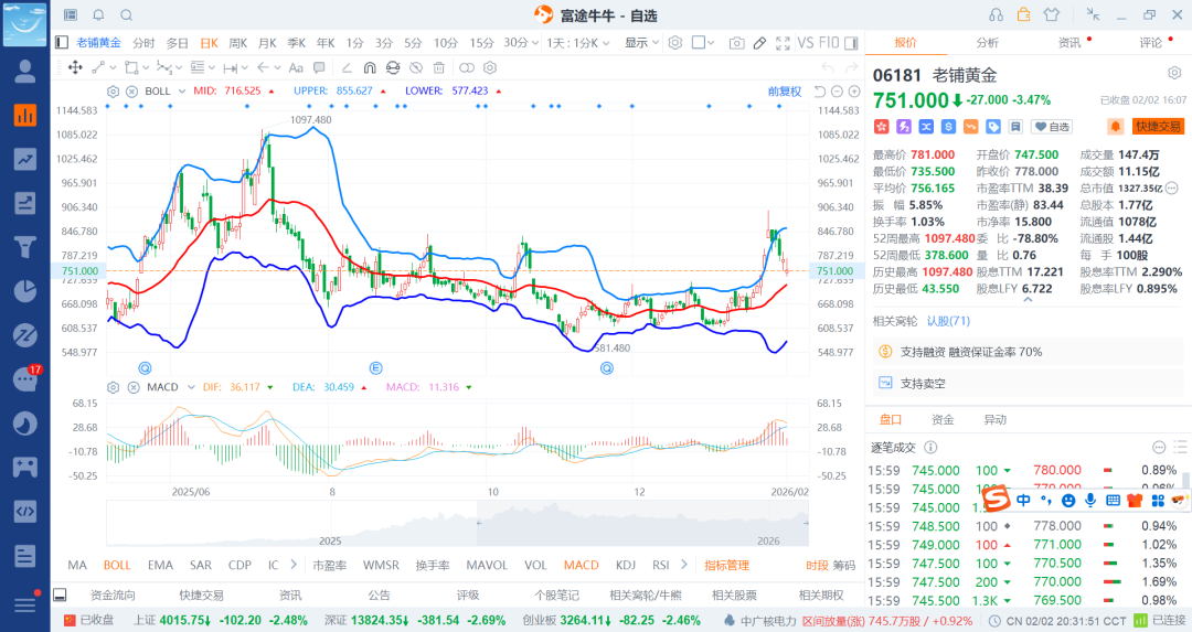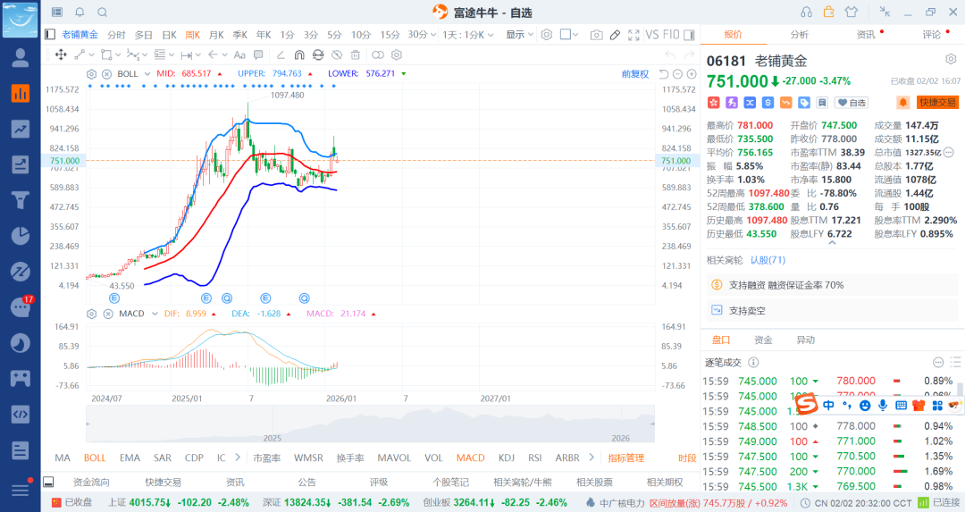 26-2-3 融券空之老铺黄金持续走低t出去一笔(4)