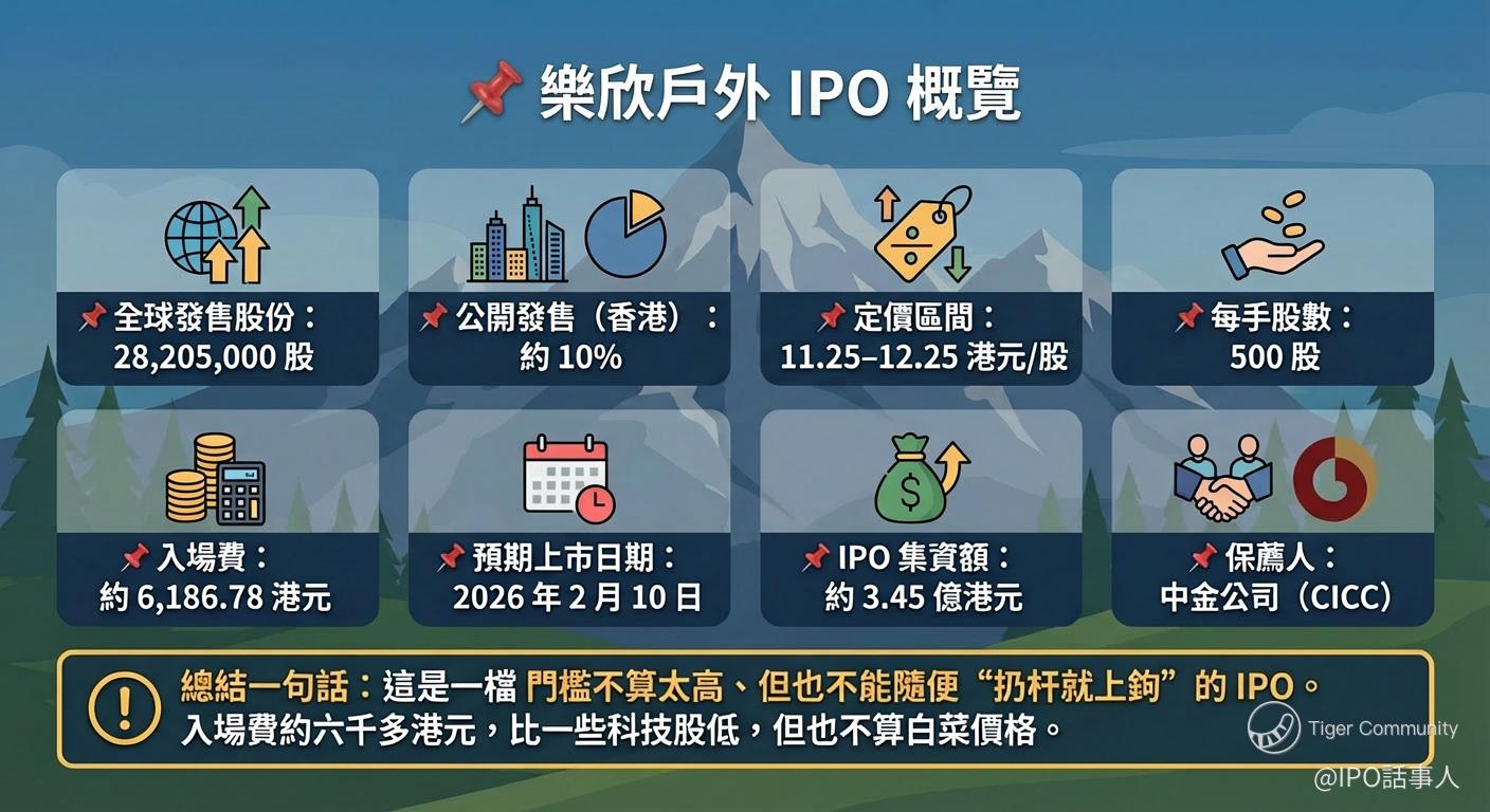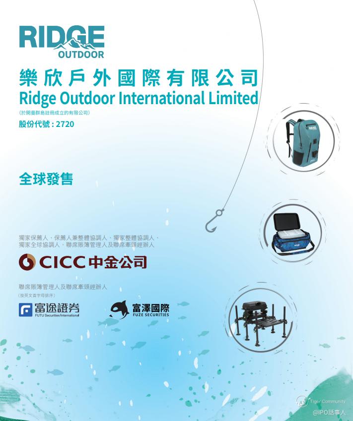全球最大钓鱼装备制造商 $乐欣户外(02720)$ (Ridge Outdoor International Limited)正式启动港股 IPO,股票代号为 2720.HK,定位为“全球钓鱼装备第一股”,拟于 2026 年 2 月 10 日 在香港联交所主板挂牌上市。中金公司担任 独家保荐人。