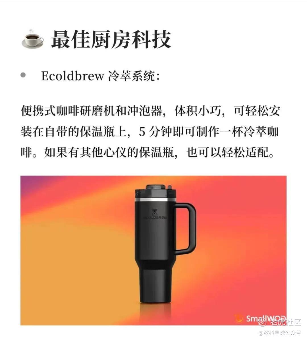 而这款冷萃咖啡机,正是抓住了这一消费趋势,将机器巧妙地嵌入了Stanley保温杯中。