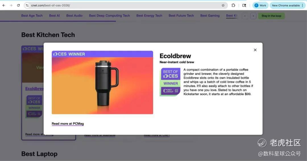 这对父子没想到,他们联手打造的冷萃咖啡机,不仅能5分钟出杯,还能轻松嵌入人手一个的Stanley保温杯,更在4500家参展商的CES展会上脱颖而出,斩获Best of CES厨电科技类大奖。