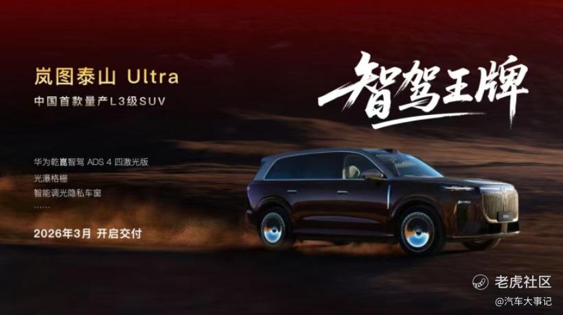 岚图泰山L3级智能辅助驾驶测试车已进入最后冲刺阶段,该车型将于2026年3月开启交付。