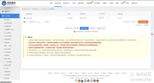 因为国内支持.club注册的域名品牌商比较少,之前选择在西部数码注册的。