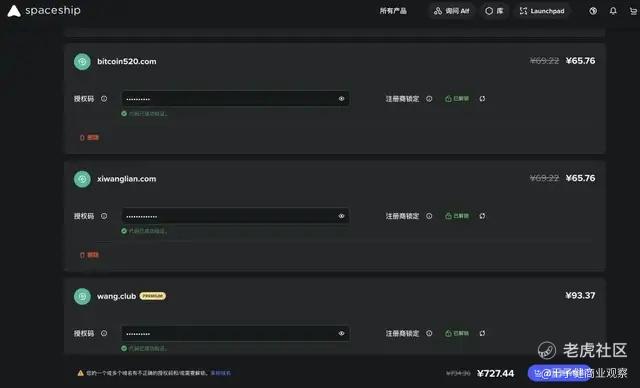 之前放在阿里云,不常用。主要作为长期的投资收藏,所以转到Spaceship统一管理。