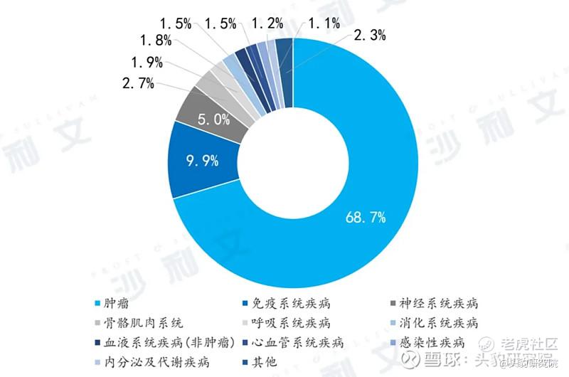 图:全球细胞治疗领域研发管线-按适应症拆分