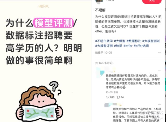 于是,同是为大模型提供训练数据,劳动却分裂成两个世界:一边是一单五毛的机械点击,靠透支视力与青春换取微薄日薪;一边是一单上千的认知输出,用专业积淀兑换灵活高酬。