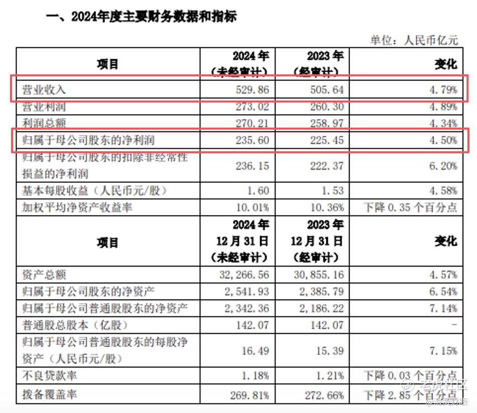 回顾起2024年的财报数据,这年上海银行的营收是529.86亿元,同比增长4.79%。净利润方面为235.6亿元,增长只有4.50%。可见,上海银行的营收利润虽仍有所涨幅,但是增长幅度已经极度放缓,或者已经来到了增长的瓶颈阶段。