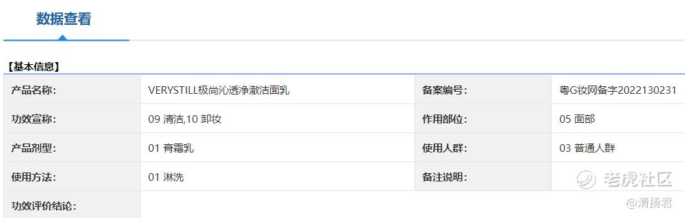 通过药监局官网查询发现,备案编号为“粤G妆网备字2022130231”的“VERYSTILL极尚沁透净澈洁面乳”,备案功效仅为“清洁、卸妆”,并没有网页和直播间宣传的全能选手那样,集“舒缓、修护屏障、补水保湿、滋养锁水、焕亮肌肤”于一身的,甚至敢打“强抑黑”这种只有特殊用途化妆品(祛斑美白类)才能宣称的功效。这已经不是夸大其词,而是赤裸裸地踩了监管红线。