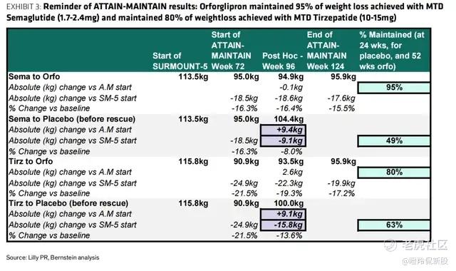 除了空腹限制外,Orforglipron的ATTAIN-1研究在同类减重药物试验中较为特殊,并未强制要求500卡路里的热量缺口(一般纳入此要求的试验,减重效果或将更显著),KOL认为ATTAIN-1研究结果可能更贴近真实世界情况,这将带来处方偏好的差异。