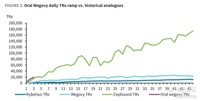 (口服司美日处方量曲线与历史同类药物对比 图源:Barclays)