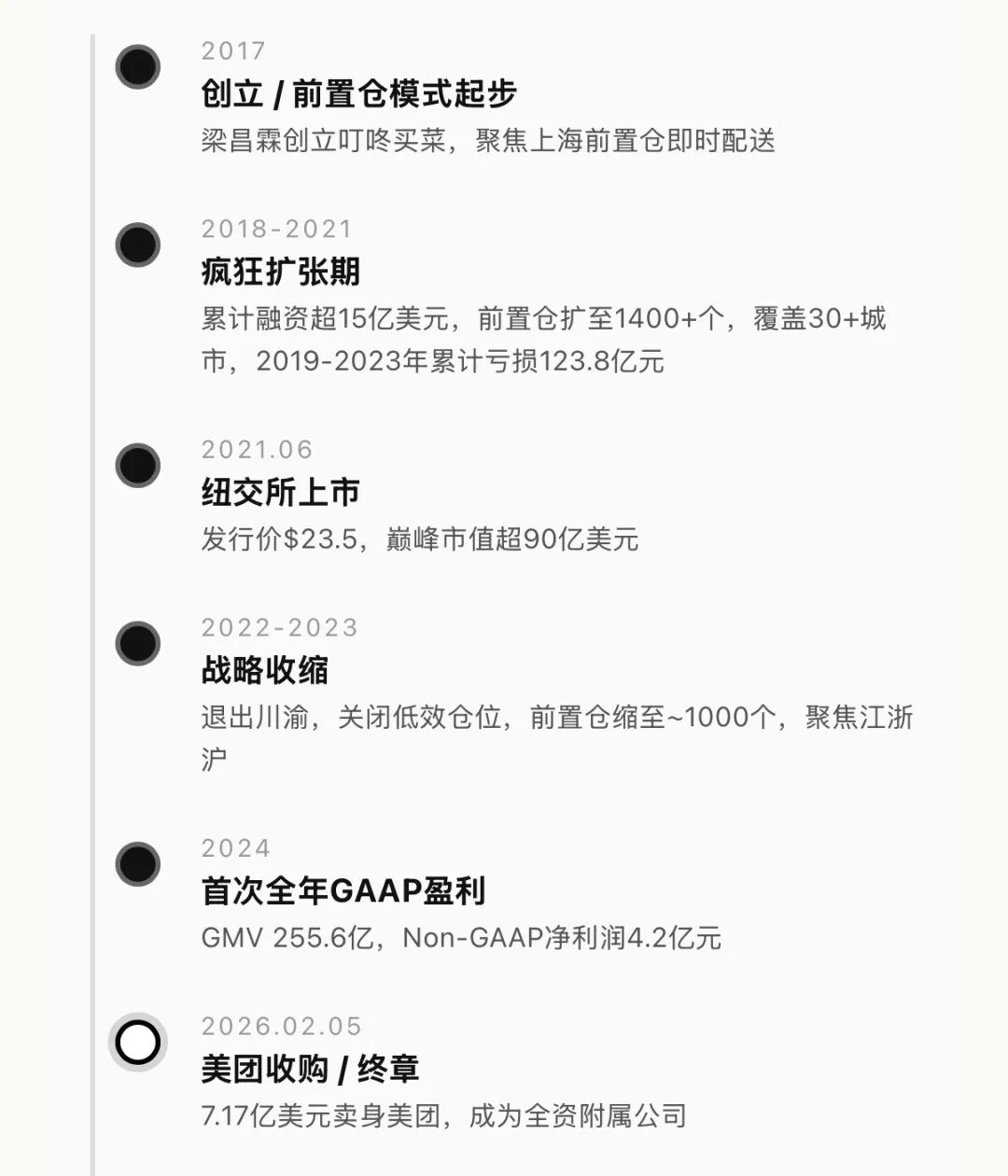 2月5日,美团正式公告拟以7.17亿美元收购叮咚买菜中国业务全部股份。交易完成后叮咚将成为美团间接全资附属公司,财务业绩并表。