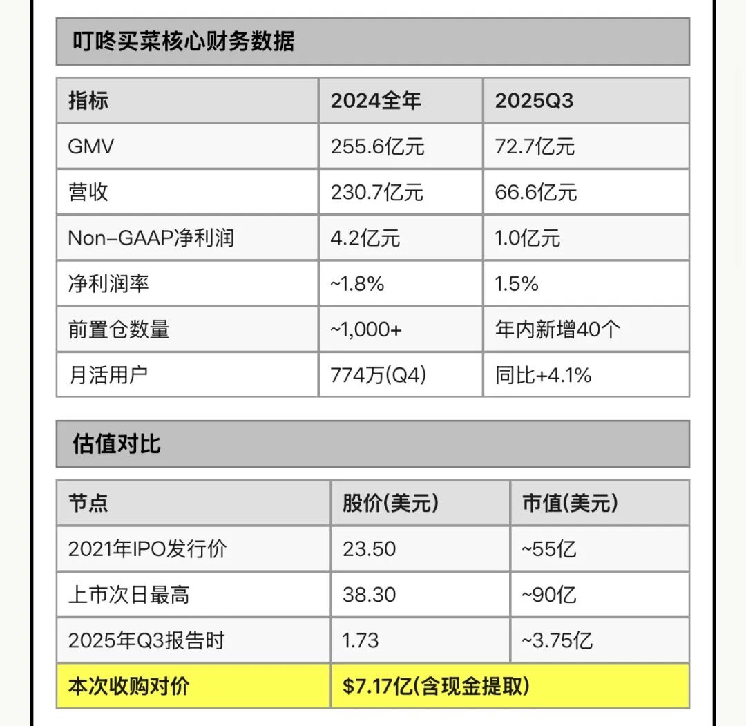 7.17亿美金,美团把叮咚买菜收了