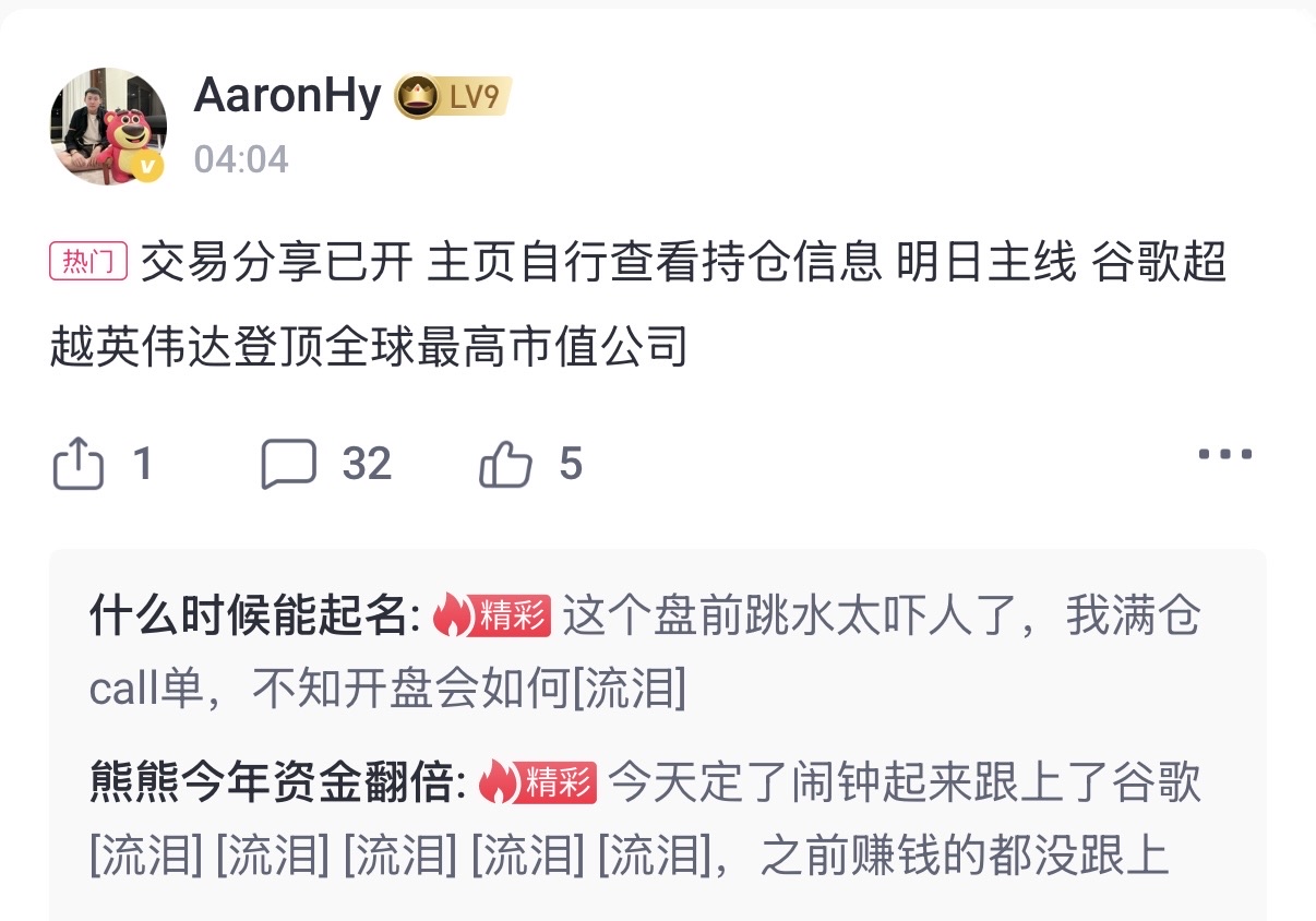 {"i18n":{"language":"zh_CN"},"data":{"magic":2,"id":529543411463480,"tweetId":"529543411463480","gmtCreate":1770303948122,"gmtModify":1770303959785,"author":{"id":3525099269122154,"idStr":"3525099269122154","authorId":3525099269122154,"authorIdStr":"3525099269122154","name":"二Der","avatar":"https://static.tigerbbs.com/0a541e752179137a5296a321afc9c986","vip":1,"userType":1,"introduction":"","boolIsFan":false,"boolIsHead":false,"crmLevel":8,"crmLevelSwitch":0,"individualDisplayBadges":[],"fanSize":2,"starInvestorFlag":false},"themes":[],"images":[{"img":"https://static.tigerbbs.com/c8e3e7025c081068fab06e462adc479c","width":"1206","height":"844"}],"coverImages":[{"img":"https://static.tigerbbs.com/c8e3e7025c081068fab06e462adc479c","width":"1206","height":"844"}],"title":"","html":"<html><head></head><body><a href=\"https://laohu8.com/S/GOOG\">$谷歌(GOOG)$ </a> 著名股神<span>[开心] </span> <span>[开心] </span> <span>[开心] </span> <img src=\"https://static.tigerbbs.com/c8e3e7025c081068fab06e462adc479c\" tg-width=\"1206\" tg-height=\"844\"></body></html>","htmlText":"<html><head></head><body><a href=\"https://laohu8.com/S/GOOG\">$谷歌(GOOG)$ </a> 著名股神<span>[开心] </span> <span>[开心] </span> <span>[开心] </span> <img src=\"https://static.tigerbbs.com/c8e3e7025c081068fab06e462adc479c\" tg-width=\"1206\" tg-height=\"844\"></body></html>","text":"$谷歌(GOOG)$ 著名股神[开心] [开心] [开心]","highlighted":1,"essential":1,"paper":1,"likeSize":6,"commentSize":3,"repostSize":0,"favoriteSize":0,"link":"https://laohu8.com/post/529543411463480","repostId":0,"isVote":1,"tweetType":1,"viewCount":1037,"commentLimit":10,"likeStatus":false,"favoriteStatus":false,"reportStatus":false,"symbols":["GOOG"],"verified":2,"subType":0,"readableState":1,"langContent":"CN","currentLanguage":"CN","warmUpFlag":false,"orderFlag":false,"shareable":true,"causeOfNotShareable":"","featuresForAnalytics":[],"commentAndTweetFlag":false,"andRepostAutoSelectedFlag":false,"upFlag":false,"length":38,"optionInvolvedFlag":false,"xxTargetLangEnum":"ZH_CN"},"commentList":[{"id":529544849888344,"commentId":"529544849888344","gmtCreate":1770304298625,"gmtModify":1770304303204,"authorId":3567057087242932,"author":{"id":3567057087242932,"idStr":"3567057087242932","authorId":3567057087242932,"name":"美股收割机2025","avatar":"https://static.tigerbbs.com/16ace8c2d733ca51c83b89378e3b4b4d","vip":1,"currentWearingBadge":{"badgeId":"e50ce593bb40487ebfb542ca54f6a561-3","templateUuid":"e50ce593bb40487ebfb542ca54f6a561","name":"偶像虎友","description":"加入老虎社区1500天","bigImgUrl":"https://static.tigerbbs.com/8b40ae7da5bf081a1c84df14bf9e6367","smallImgUrl":"https://static.tigerbbs.com/f160eceddd7c284a8e1136557615cfad","grayImgUrl":"https://static.tigerbbs.com/11792805c468334a9b31c39f95a41c6a","redirectLinkEnabled":0,"hasAllocated":1,"isWearing":1,"stampPosition":0,"hasStamp":0,"allocationCount":1,"allocatedDate":"2025.04.13","individualDisplayEnabled":0,"individualDisplaySort":0,"categoryType":1001},"crmLevel":5,"crmLevelSwitch":0,"individualDisplayBadges":[]},"repliedAuthorId":0,"objectId":529543411463480,"objectIdStr":"529543411463480","type":1,"supId":0,"supIdStr":"0","prevId":0,"prevIdStr":"0","content":"[开心][开心][开心]信他还是信我是秦始皇","text":"[开心][开心][开心]信他还是信我是秦始皇","html":"[开心][开心][开心]信他还是信我是秦始皇","likeSize":1,"commentSize":1,"subComments":[{"id":529546963891752,"commentId":"529546963891752","gmtCreate":1770304881669,"gmtModify":1770304886554,"authorId":3525099269122154,"author":{"id":3525099269122154,"idStr":"3525099269122154","authorId":3525099269122154,"name":"二Der","avatar":"https://static.tigerbbs.com/0a541e752179137a5296a321afc9c986","vip":1,"crmLevel":8,"crmLevelSwitch":0,"individualDisplayBadges":[]},"repliedAuthorId":0,"objectId":529543411463480,"objectIdStr":"529543411463480","type":1,"supId":529544849888344,"supIdStr":"529544849888344","prevId":0,"prevIdStr":"0","content":"哈哈","text":"哈哈","html":"哈哈","disclaimerType":0}],"verified":10,"allocateAmount":0,"commentType":"hot","coins":0,"score":0,"disclaimerType":0},{"id":529572015084528,"commentId":"529572015084528","gmtCreate":1770310930117,"gmtModify":1770310935631,"authorId":3498016203798034,"author":{"id":3498016203798034,"idStr":"3498016203798034","authorId":3498016203798034,"name":"不做赔本交易","avatar":"https://static.tigerbbs.com/9532d01c286797f7d36bfcb5ddfdcaf9","vip":1,"crmLevel":9,"crmLevelSwitch":0,"individualDisplayBadges":[]},"repliedAuthorId":0,"objectId":529543411463480,"objectIdStr":"529543411463480","type":1,"supId":0,"supIdStr":"0","prevId":0,"prevIdStr":"0","content":"这个**就一个神棍😂","text":"这个**就一个神棍😂","html":"这个**就一个神棍😂","likeSize":0,"commentSize":0,"subComments":[],"verified":10,"allocateAmount":0,"commentType":"valid","coins":0,"score":0,"disclaimerType":0}],"hasMoreComment":true,"orderType":2}