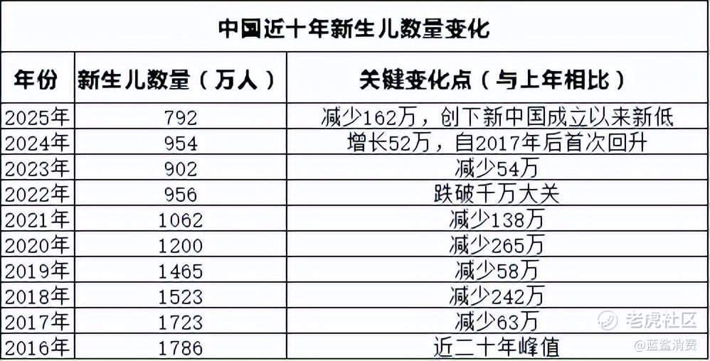 中国母婴市场正站在一个关键的历史节点。自2016年人口出生人数达到1867万的短暂高峰后,中国新生儿数量不断下滑——尽管2024年出生人口实现了自2017年以来的首次回升,达到954万人,但到2025年又下降到不足800万(792万),人口红利退潮已成不争的事实。