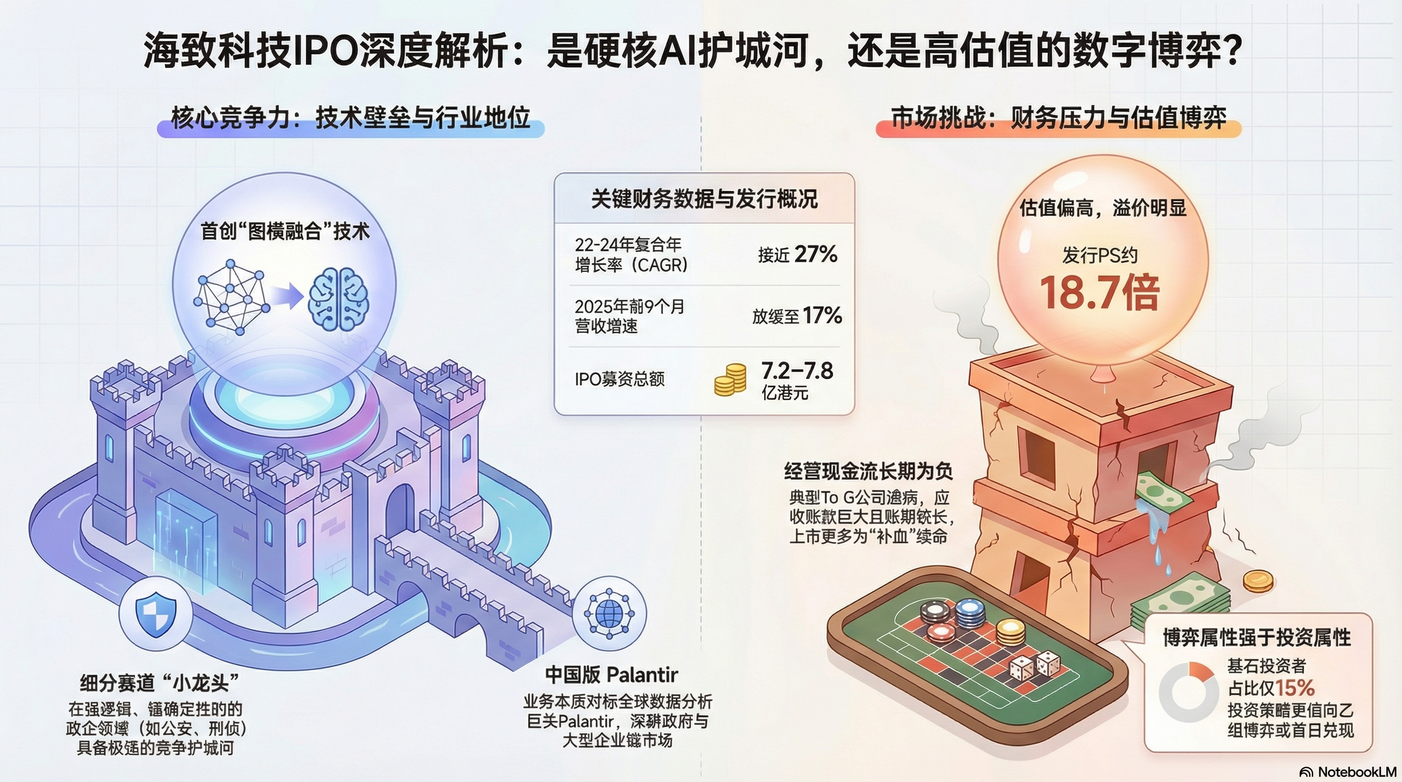 从业务本质看,海致科技的核心竞争力在于“图模融合”。简单说,大模型擅长生成和推理,但容易胡说八道;知识图谱逻辑确定但不够灵活。海致做的是把两者揉在一起,让AI在政企、公安、刑侦等强逻辑、强确定性的场景中“少犯错”。这条技术路线在To G、To B端是成立的,也确实形成了壁垒——在公安与刑侦领域,海致基本是国内最强之一,这是它的护城河(想想 $Palantir Technologies Inc.(PLTR)$ )。