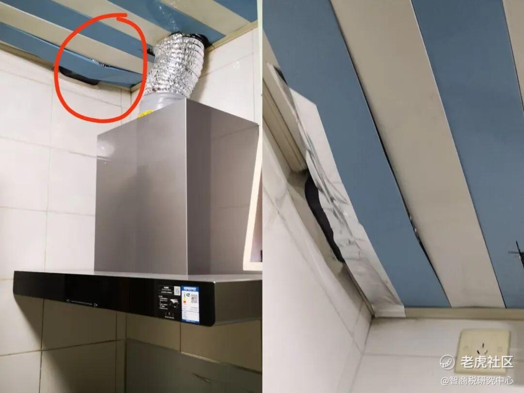 小孙安装方太油烟机时,厨房已经先完成了吊顶,结果师傅安装完成后,吊顶鼓出了一个大包,后面小孙打电话投诉,师傅又上门进行了还原。