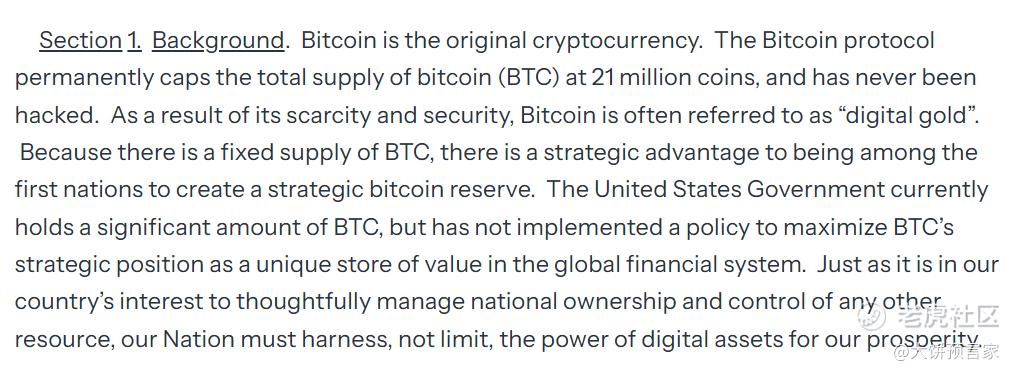 2025年3月,美国宣布建立大饼战略储备,其中行政令《建立战略大饼储备和美国数字资产储备》,有一段是这么描述的。