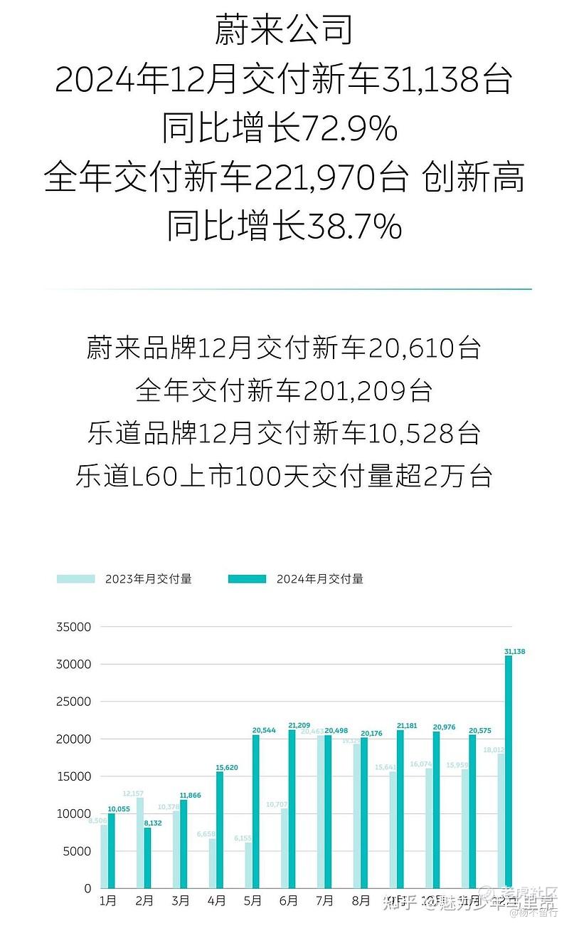 财报数据显示,蔚来2025年第四季度交付新车124,807台,同比暴涨71.7%,刷历史新高。其中12月单月交付48,135台,同比增长54.6%。