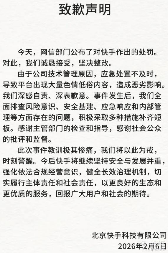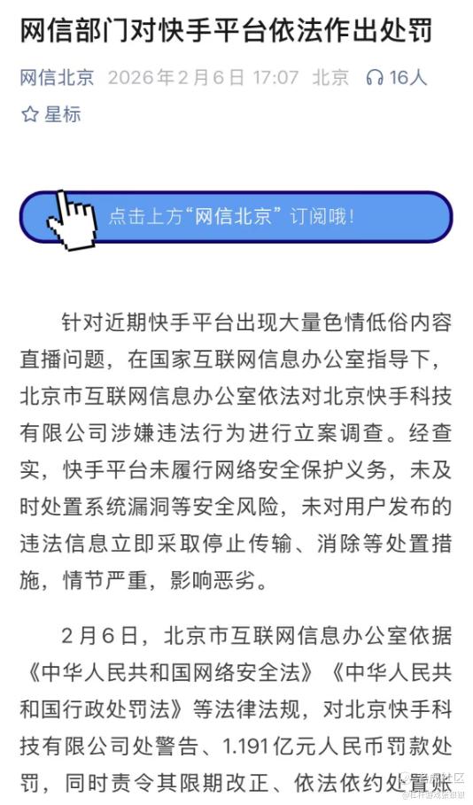 2026年2月6日,北京监管部门为快手送来了价值1.191亿元的“合规账单”。