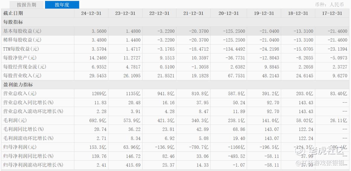 2024年是快手实现全面盈利并展现出强大赚钱能力的关键一年。财报数据显示,这一年其营收1269亿元,同比增长约11.83%。