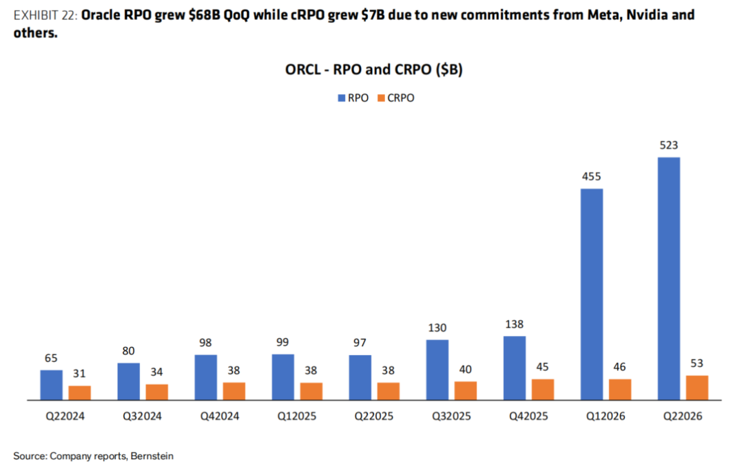 和Big 3不同,OCI走的是一条更轻地产、重硬件的扩张之路。它并不自建数据中心,而是通过租赁锁定机房资源,资本开支主要投在服务器等硬件上,理论上这条路扩容更快、补供给更灵活。四季度,OCI的积压订单规模已经到了5230亿美元,同比暴增438%,英伟达、Meta都是它的大客户。