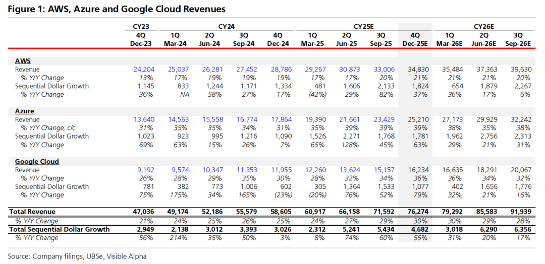 2025年三季度,在全球云基础设施服务市场中,这三家加起来的份额占到了60%以上,行业集中度还是很高的。同一季度,三家云服务加起来的营收有716亿美元,同比增长29%,是三年来增长最快的一个季度。